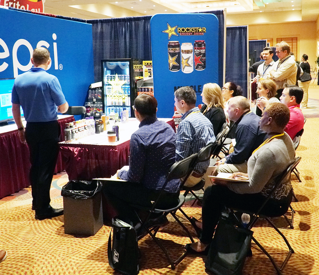 About 110 vendors are presenting at the conference, including AQUAHydrate, Del Monte, Hunt Brothers Pizza, J. Walken Chicken, Nestle Waters and new vendors Field Trip Meat Snacks, Fresh Bakery Network and Halo Top, an ice-cream company.