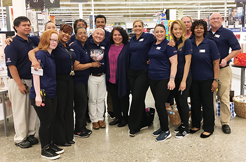 President and Chief Merchandising Officer Ana Middleton, center, stands with Fort Meade associates, who received her coins for getting glowing customer comments.