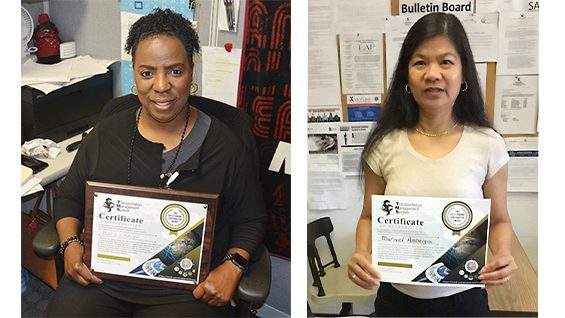 Mary Lanier, HQ international manager; and Marivel Ambegia, manager, Hawaii Distribution Center;ย received certificates last month from Andy Dawson, USTRANSCOMโS senior supply chain IT project manager, for lending their expertise.ย Jennifer Colon, a former associate at the Hawaii DC, also received a certificate.