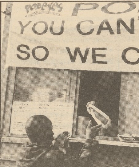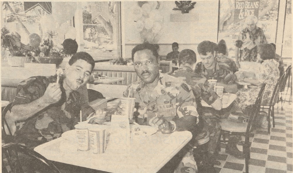 Autumn 1991: The Popeyes team at the Exchange in Schweinfurt, Germany. Because of limited storage space, the location could only offer about a third of the menu items offered in the United Statesโ€”but according to its general manager, it started off making $150,000 a monthโ€”more than 10 times what similar-size locations made in the States.