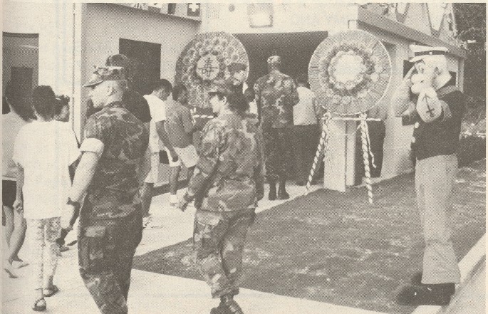 Late 1992: Opening day at Popeyes Okinawa (note Sailor Man at right). The opening set records for first day and first week sales, with more than 8,500 customer orders on the first day. The opening-week response ย was so overwhelming that security police had to set up a special lane directing customers from the main road to the restaurant.
