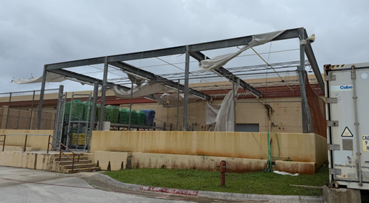 At the Barrigada National Guard Express on Guam, flooding from an air conditioning duct led to water damage to products below. The stockroom floor was covered with water, causing damage to all items on the floor. The Northwest Field Express was closed with no power or water, and damage hadnโ€™t been assessed yet.